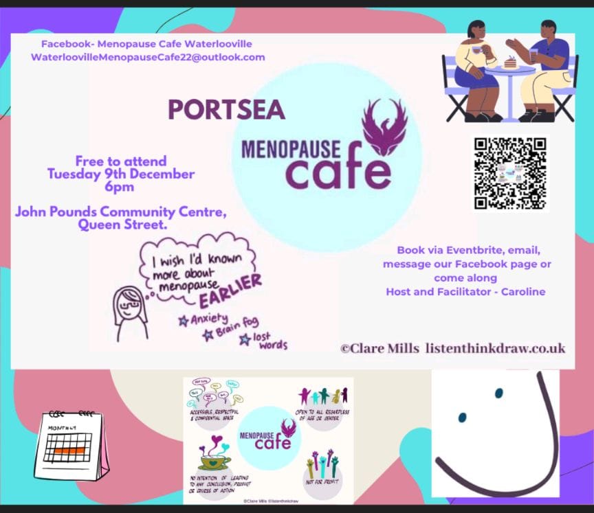 Pop along to the Menopause Café at John Pounds Centre on 9 December at 6pm. Join other people and chat about perimenopause and menopause over a cuppa. Page Views: 0